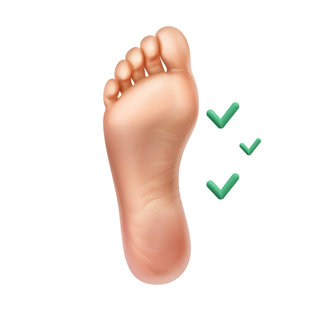 Picioarele și unghiile arată sănătoase, fără semne ale unei infecții anterioare.