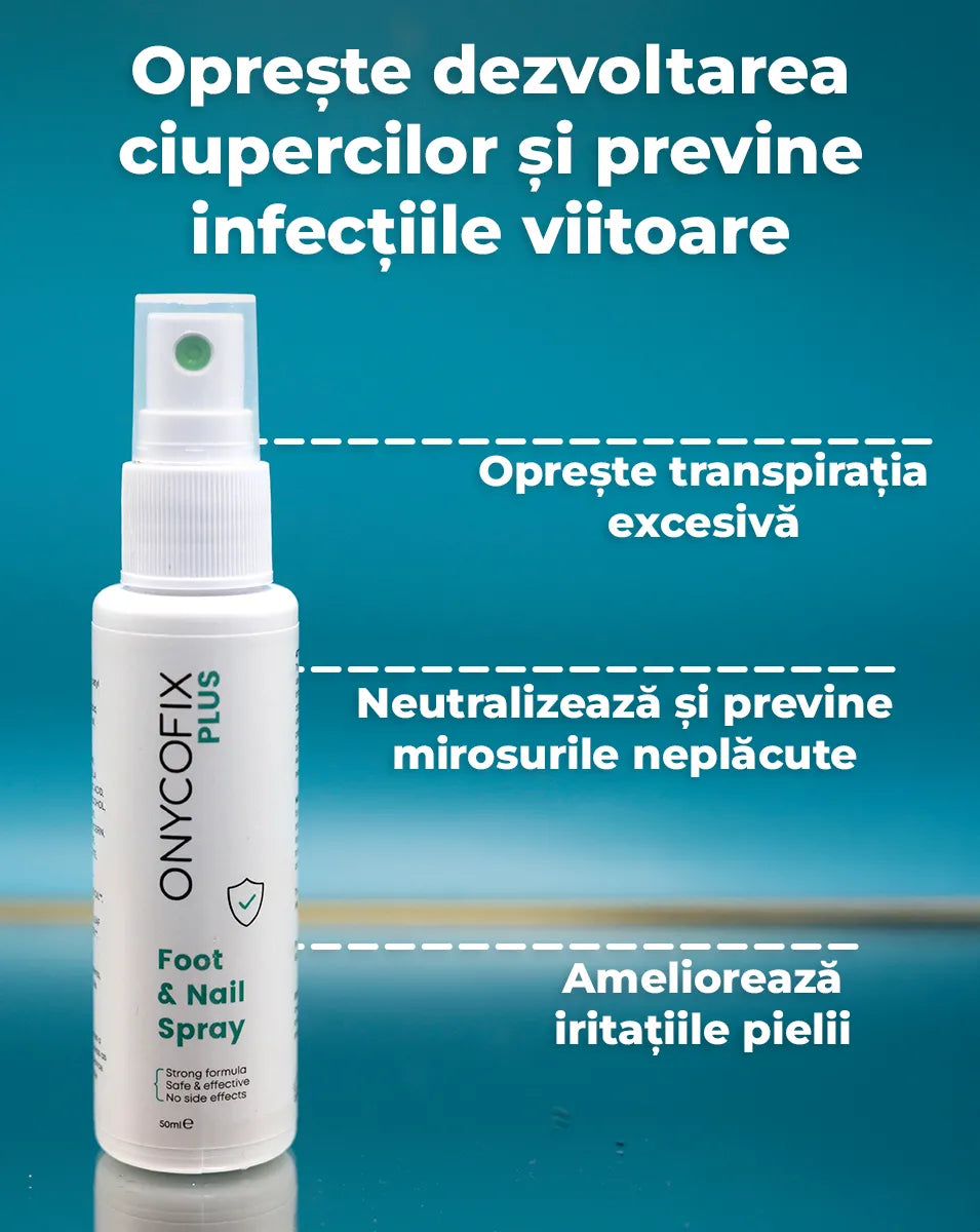 Client verificatLucrez în construcții și toată ziua stau în bocanci de lucru. Picioarele îmi transpiră îngrozitor iar la un moment dat a apărut și mirosul neplăcut plus călcâiele crăpate. Sincer, am crezut că e doar din cauza oboselii, dar s-a dovedit a fi o infecție fungică. De când am început să folosesc spray-ul Onycofix îmi simt picioarele mai proaspete, nu mai am acea mâncărime insistentă iar călcâiele arată și ele mai bine. Este primul produs care chiar m-a ajutat.